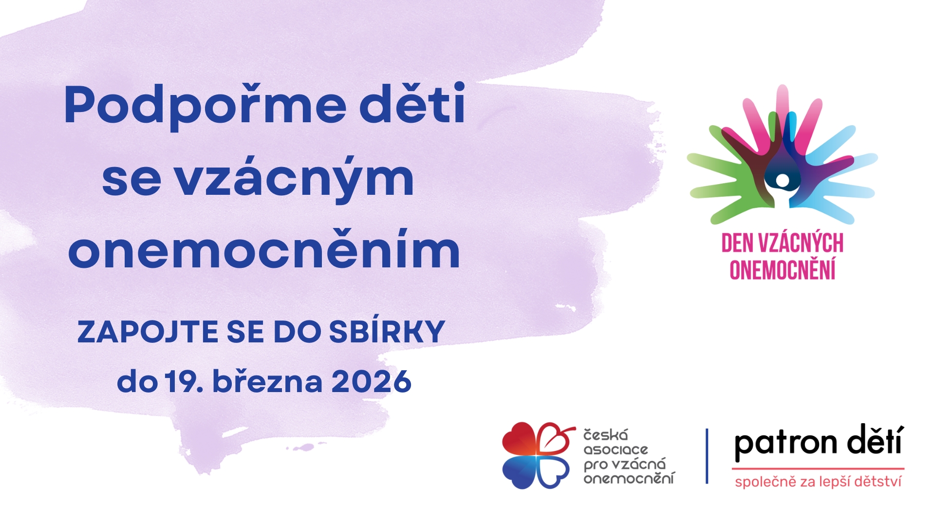 Česká asociace pro vzácná onemocnění (ČAVO) se ve spolupráci s neziskovou organizací Patron dětí zapojuje do kampaně „Podpořme děti se vzácným onemocněním“, která probíhá od 9. února do 19. března 2026 u příležitosti Světového dne vzácných onemocnění.